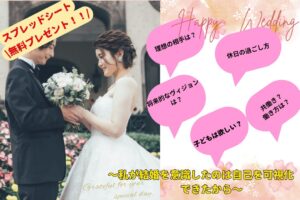 〜結婚観に特化したスプレッドシートを無料プレゼント〜私はこれで結婚観が湧きました 周りからの目や両親からの後押し、結婚していく同年代と見ていることで焦りを感じている人も多いのではないでしょうか? しかし、その一方で、自分は本当に結婚したいの...
