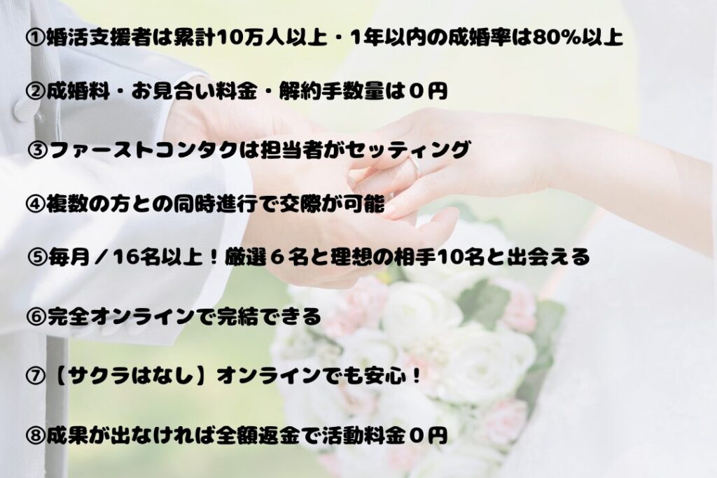 婚活支援者は累計10万人以上・1年以内の成婚率は80%以上