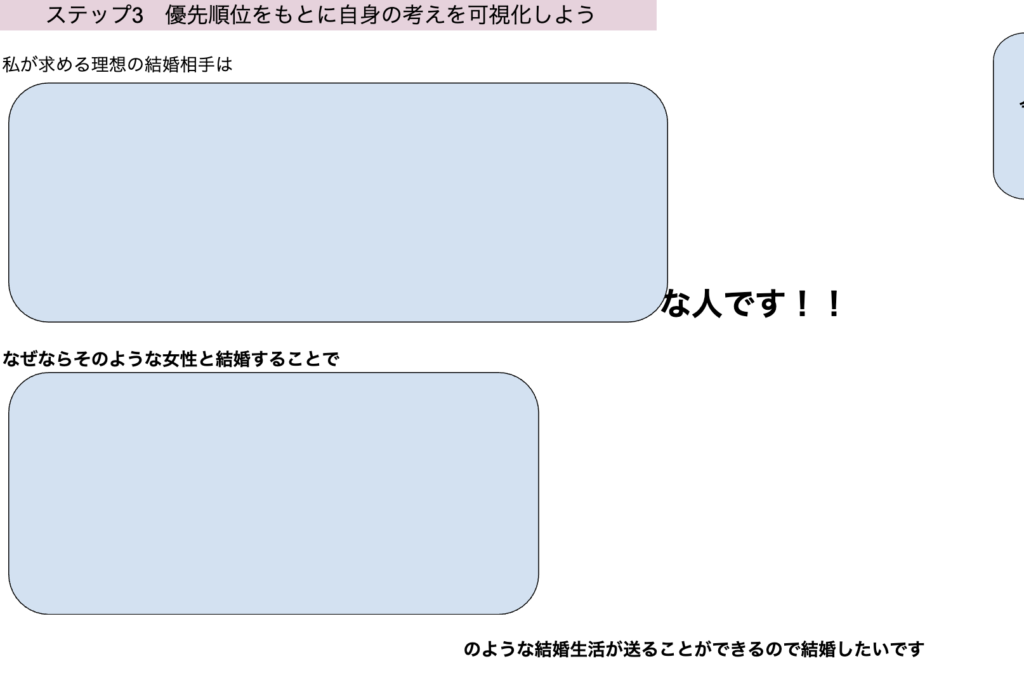 思いのまま記載していただき、自分らしい結婚観を見つけてみましょう