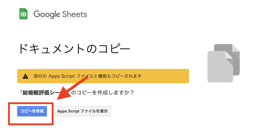 そうしたらこのような画面が赤い□をクリック。コピーを作成を選びます