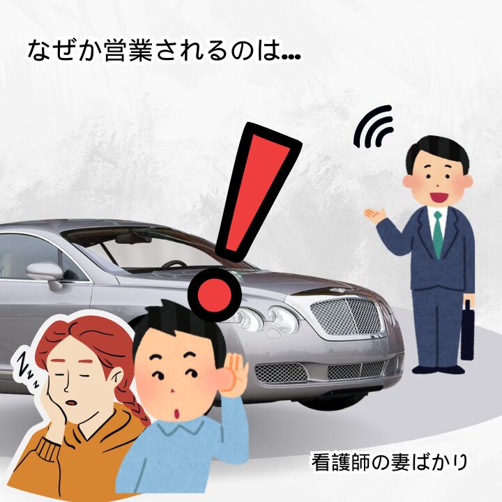 看護師は、属性もよく失うことがない職種。証券マンや車の販売員が奥さんの方ばかり営業するってのはあるあるな話!